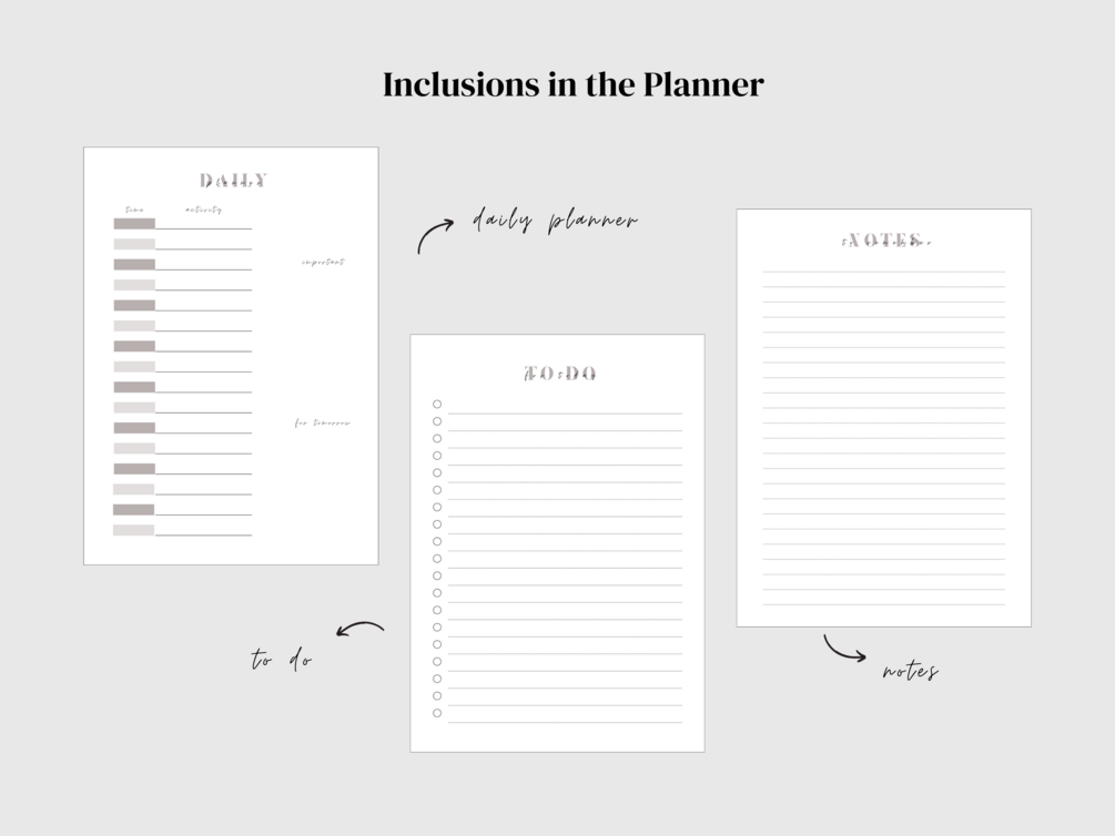 In this set, you'll have a template for notes, to do, and daily planner that is easily customizable. It is available in four sizes: A4, A5, A6, and US Letter.