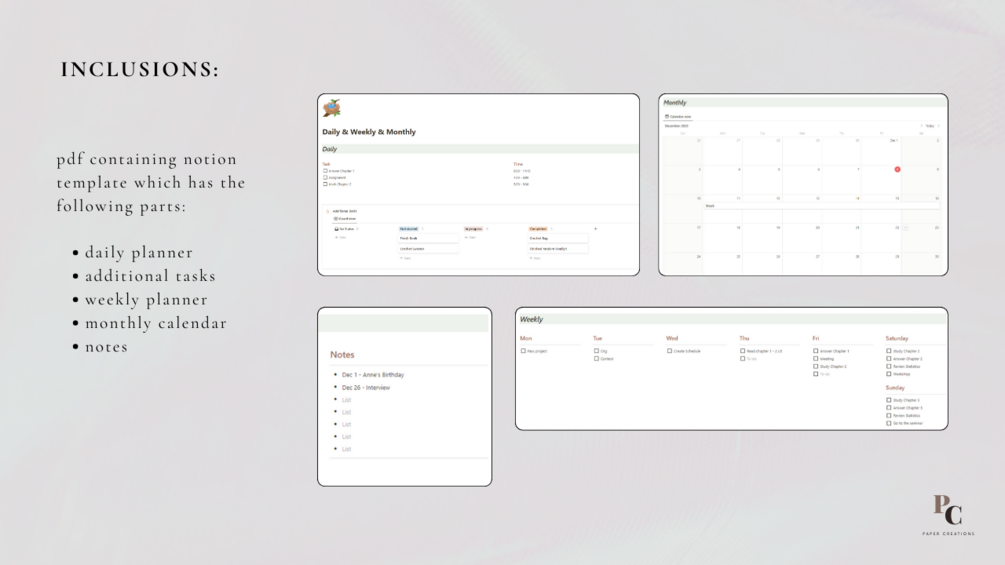 Notion Daily, Weekly, Monthly Planner