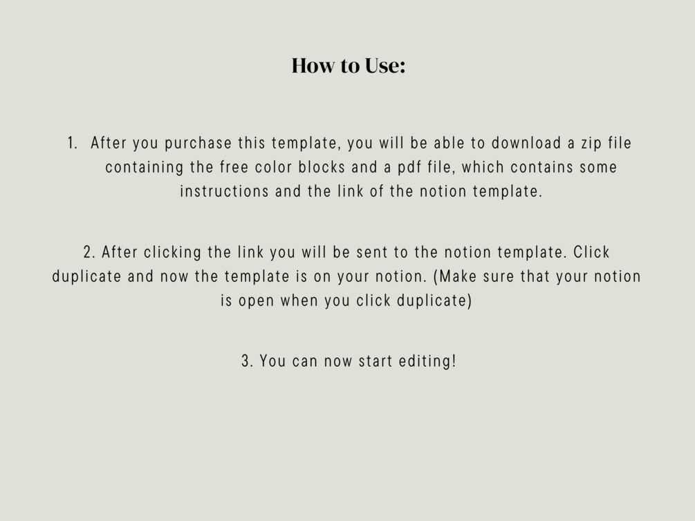 Once you purchase this, you will get a zip file of the color blocks and a pdf containing the link of the Notion Habit Tracker Template containing the following: