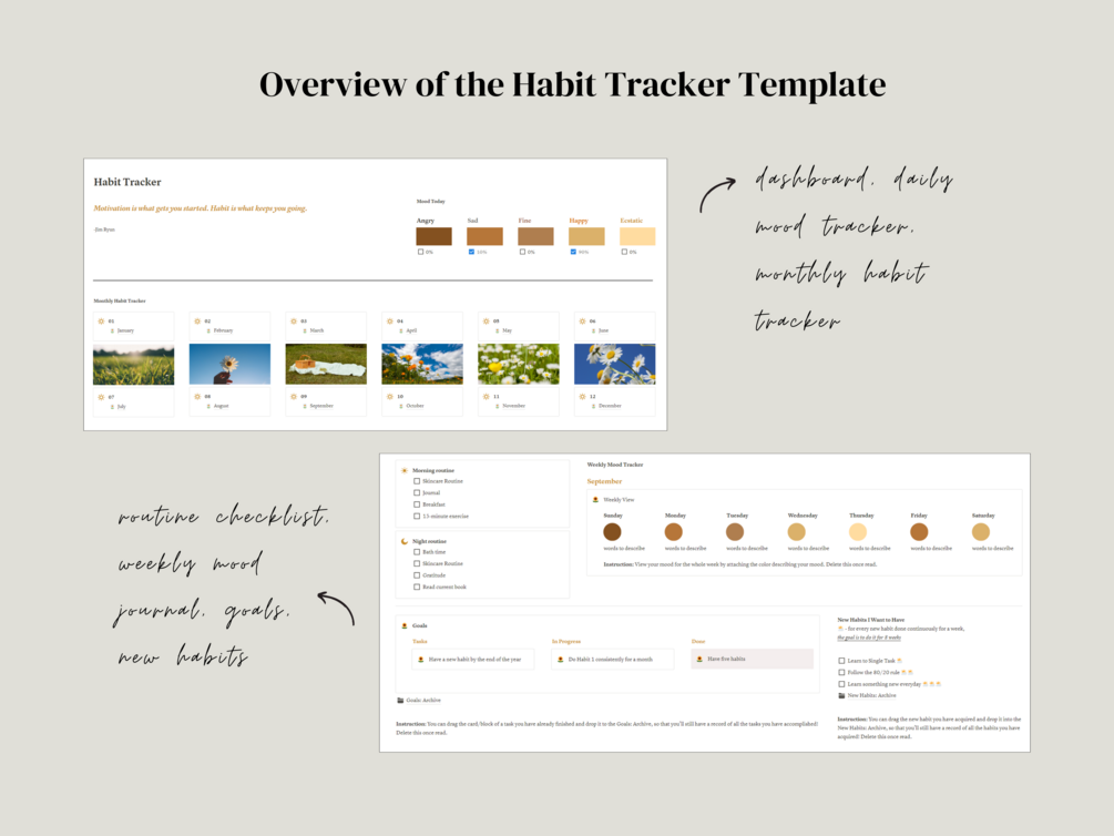 The habit tracker can suit beginners and those with experience in using Notion. The template already has instructions to help you in using it!